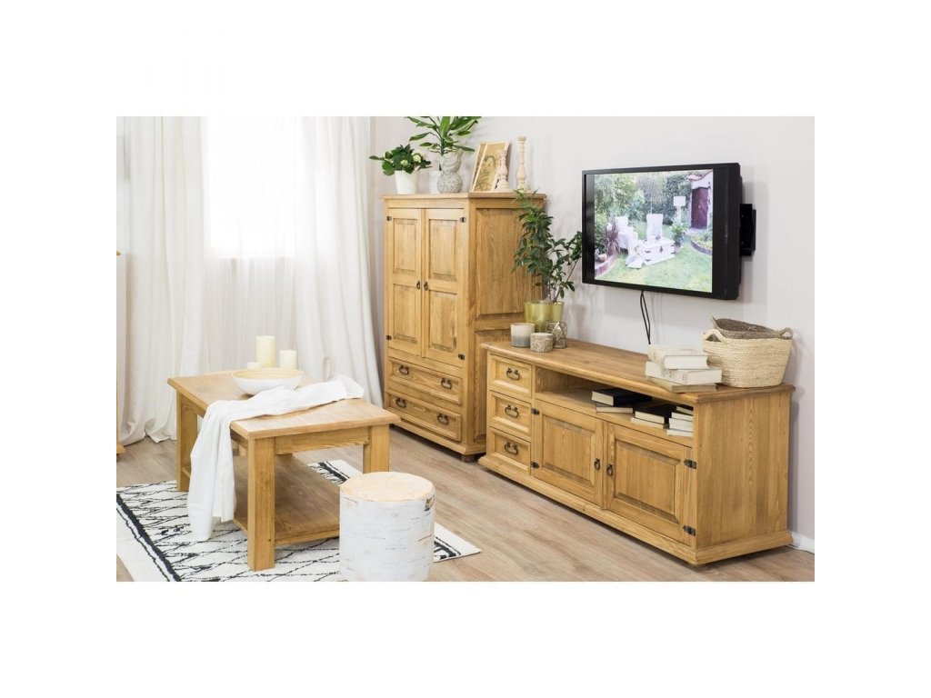 Rustikální televizní stolek POPRAD RTV07 je vyroben z masivní borovice. Jedná se o velmi kvalitní voskovaný nábytek.